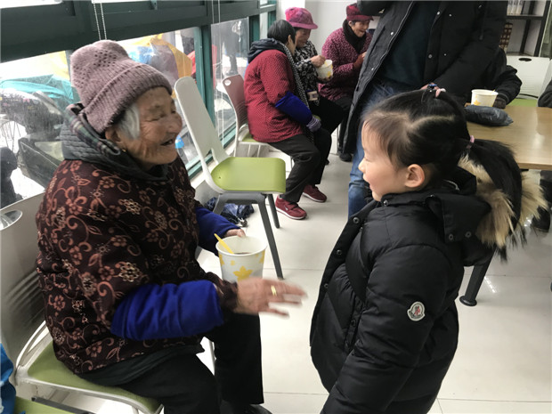 为了让幼儿园对面三益书屋里的爷爷奶奶们也能品尝到孩子们做的腊八粥,下午起床之后,孩子们把粥先给老人们送了过去,也带去了对老人们的祝福。听着孩子们的祝福,端着别样的腊八粥,爷爷奶奶们的心里暖暖的,孩子们的脸上也乐开了花。回到教室,每个孩子都仔细品尝着用他们自己要来的粮食做出来的腊八粥,吃得津津有味。
