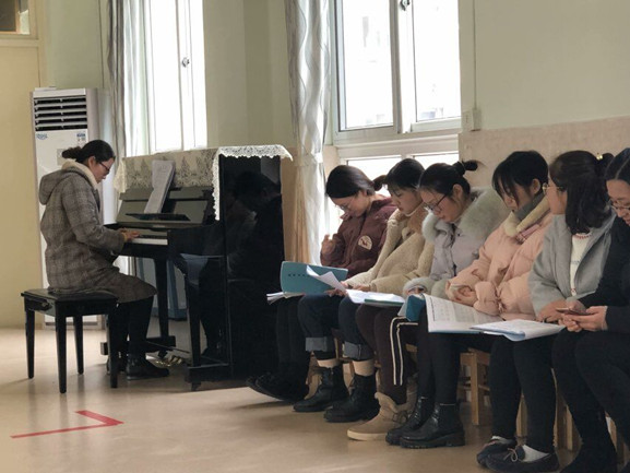 1月14日至1月17日,河海幼儿园分两部、分级组开展了教师技能大练兵——自弹自唱考核。本次考核分为自备曲目弹奏和儿童歌曲弹唱。教师们用心准备自备曲目,在古筝、陶笛、小提琴、钢琴等乐器上都展现了各自不俗的实力。从教材中选出的60首儿童歌曲,全体教师在课余时间也用心练习,面对随机抽取两首歌曲的考核也能沉着应对。