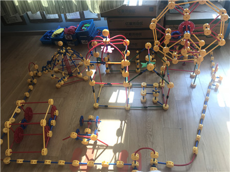 游戏是幼儿最基本的活动方式,作为幼儿园教师,必须用自己的“会玩”带动幼儿的“会玩”,让他们的游戏水平提升。那么作为孩子们最喜欢的积木游戏,老师的建构水平怎么样呢,不如各位老师们也做一回孩子,在各班的建构区大展拳脚,展示你们最厉害的建构水平!1月21日中午,三个年级组的老师们,纷纷在自己班的建构区,综合使用万能工匠、雪花片、积木、自然材料等搭建不同主题的建构作品。