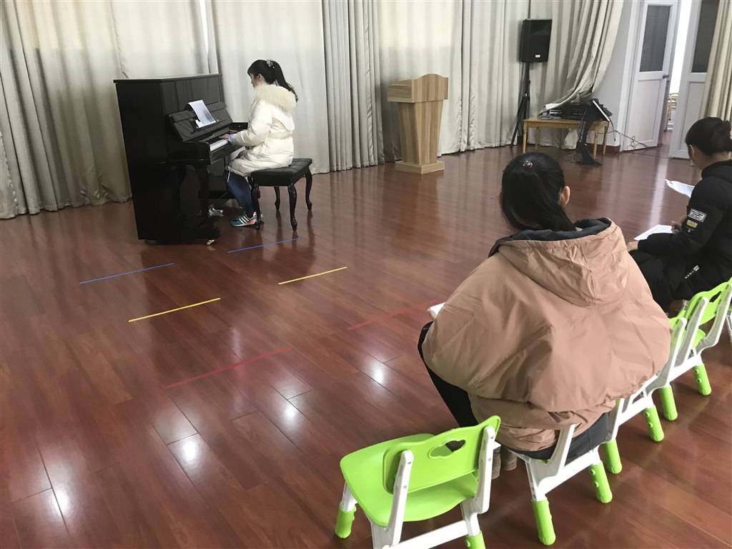 此次考核内容为:自弹自唱、舞蹈、绘画、讲故事。老师们在规定时间里聚集舞蹈房等待考评。此次考评以抽签的形式展开,老师们逐一抽签后在候场室准备着……