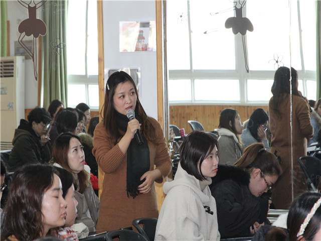 再次,自主管理工作室刘艳老师主持并邀请祁苗老师、樊颖老师汇报小、中、大班生活课程,从戳牛奶的跟进观察和支持策略、自主使用饮水机、自主盛饭菜等向大家充分展示了这一学期来的成果。李云艳老师、王彬老师认为汇报切入点小,但研究很深入。卞老师认为工作室的成员之间可相互碰撞,围绕一日生活基于点形成经验,更具有系统性。
