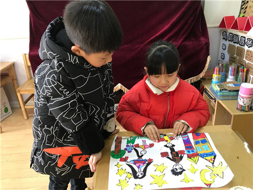 大班作为幼儿园里的哥哥姐姐,体现了强烈的主人翁意识及榜样作用,他们通过手中的画笔画出了自己对禁放烟花爆竹的理解,还带着这些画走进小班弟弟妹妹的教室,向他们宣传禁放烟花爆竹的理念。