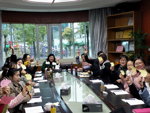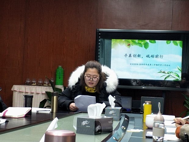 大会由陆娇副园长主持,会议开始前,全体教职工开展了温馨许愿传递小游戏,大家将各自的新年愿望写下来,然后随音乐传递,他人再续写祝福。温馨的氛围为新一年的工作打开了满满的能量。接下来组织全体教职工观看了励志微视频《一只永不言弃的猪》,结合猪年,让大家看到了为了吃到美食而锲而不舍地想尽办法的一只小猪形象,让人啼笑皆非,又耐人寻味,针对微视频,大家进行了点评交流,各自从不同的角度去分析了小猪的个性、智慧及品质。紧接着由张小红园长进行了新学期园务工作计划交流,将新学期工作融进园务工作计划中,简单精炼地罗列出了本学期工作的重点,让每一位教职员工都端正工作目标,明确工作任务,有清晰的工作思路。随后是三位教职工代表进行了交流发言,本次发言不同于寻常的计划交流,而是结合自己的工作日常,以故事的形式娓娓道来,内容真切感人,让大家看到了她们的工作热情。最后陆园长部署了新学期开学初几项工作,让大家在最近两天工作充实有力量。