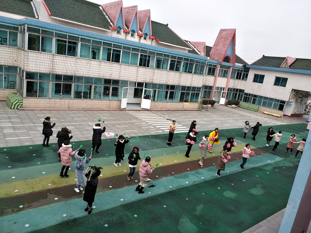 2月16号下午,安家幼儿园组织各年级组在进行早操律动展示。
