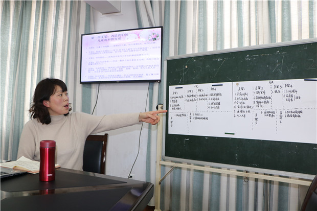 此次活动分两个话题展开。第一个话题“梳理课程改革第一步支架内容”,印老师针对第一步支架的六个内容展开了研讨,即“儿童行为观察、指南目标领会、空间管理、时间管理、资源管理、自主生活管理”,分析了各个方面在课程实施中的优势与不足,并提醒教师反思自己的教育行为,再一次自查第一步支架的六个方面在幼儿一日生活中落实到实处的成效。第二个话题“学习课程游戏化第二步支架”,即“改造我们的专业知识和能力结构”。如何走好课程游戏化的第二步支架,印老师提出了自己的想法,她希望每一位老师都能认真研读专业书籍,通过精读、互读、研讨、实践等过程,透彻理解专业理论知识,学会用专业的眼光分析儿童行为。