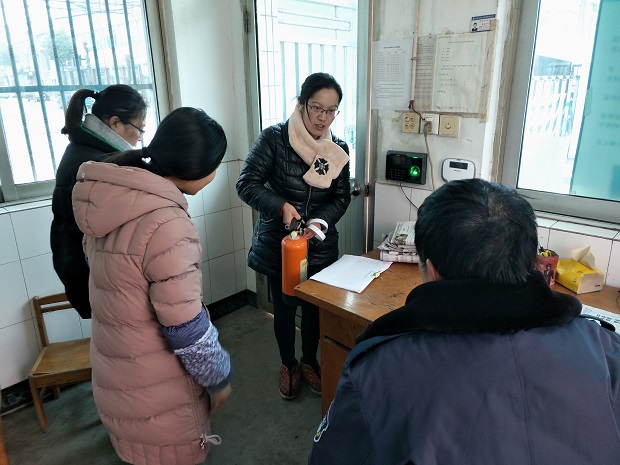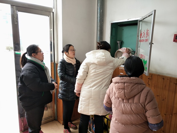由后勤主任钱海南老师带队,行政组一行从保安室开始进行了拉网式的排查。对于保安室灭火器的存放地及使用方法,钱老师对保安师傅进行了现场询问、考问,保安师傅对答如流,尤其是灭火器的使用方法,保管期限等,都掌握得清清楚楚,一键报警器、围栏报警器都在正常工作中,可见大门口的安保工作很正常。随后一行人又针对校园内各个区域的消防设施进行了检查,鉴于户外和室内消防栓、消防水带所在的环境不同,大家关心这些物品的使用寿命,几个人进行讨论无果,为了确保安全,最后求助专业人士得到了明确的答案才放心。 钱海南老师一边组织大家进行检查,一边不断进行记录,体现了后勤工作管理的精细化。