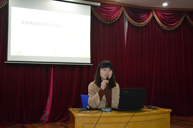 第一位交流的是中班级组长叶蕾老师,叶老师总结中班级组在过去的一学期关于家园互动方面的感悟与收获。重点分享家委会的成立与管理、蒲公英课堂两点,叶老师利用各种表格和照片,让老师们一目了然,在叶老师的分享中,老师们不但学到了很多与家长进行互动的方法,也更深刻的明白家园互动的重要性。