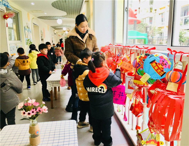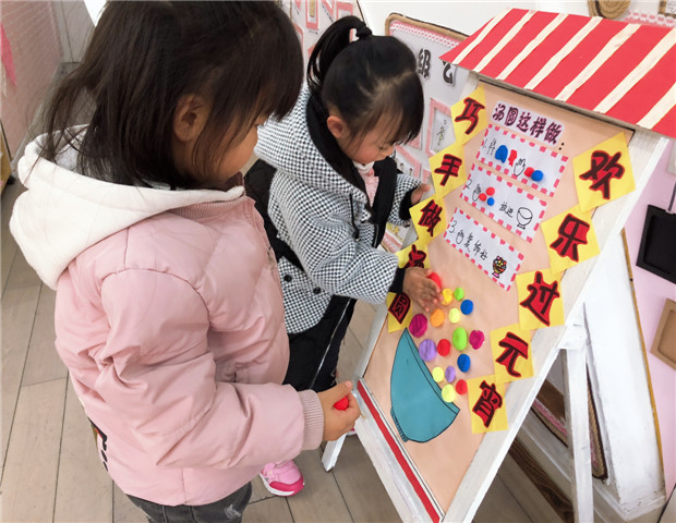 元宵节上午,“元宵喜乐会”游园活动在孩子们的期盼中开始了。孩子们在了解了全园游戏分布后,带着集星卡出发啦!瞧,中1班的自制花灯游戏吸引了很多孩子参与,孩子们用粘土、彩纸、画笔等材料,专注地画着、剪着、贴着,不一会一盏盏漂亮的花灯就完成啦!走廊里,一群孩子在赏花灯猜灯谜,你一言我一语,争着说出谜底。传统游戏踩高跷和套圈圈同样引来了许多孩子的热情参与,他们在玩中体验传统游戏的魅力,感受元宵节热闹的节日氛围。游园活动结束后,孩子们带着集星卡回班与老师和同伴分享了游园的过程和他们的所思所想,天天说:“元宵节活动真有趣,我在套圈圈游戏中获得了奖励,还猜中了两个灯谜。”灵灵说:“今天我学会了做花灯和搓元宵,晚上和家人一起过元宵节,我也要和他们一起做元宵、赏花灯”……