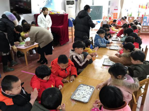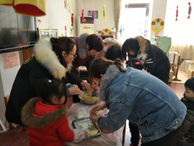 “月儿圆圆,汤圆甜甜,自己动手,意义非凡”。“搓汤圆”活动开始啦!首先由家长和老师们先用水果汁或者蔬菜汁和上糯米粉,揉成一块有颜色的面团,然后由家长介绍并示范搓汤圆的步骤,接着孩子们学着家长的样子从面团上捏下一小块面团,小手飞快地搓着,一会儿功夫,孩子们搓出了很多很多的汤圆,有红色的,黄色的,紫色的,绿色的,各种大大小小五颜六色的汤圆,看着自己搓的汤圆,大家脸上洋溢着兴奋与自豪,在孩子们欢声笑语中我们圆满结束了活动。