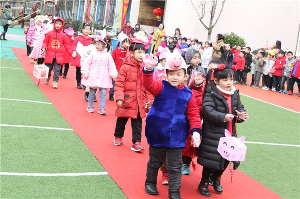 我们穿上了唐装,戴上头饰,把自己装扮成绘本故事中的小猪,在红地毯上秀出自己的风采。瞧,我们戴上了小猪的头饰,戴上了小猪鼻子,插上了洁白的羽毛,背上小猪包包,穿上了小猪衣服……我们的时装秀开始啦!红毯上每一只“小猪”都是那么得可爱动人。