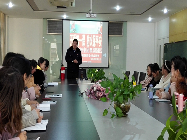 在演练前,奥园中班部教师齐聚会议室,共同聆听来自常州政安防火中心张心诚主任主讲的消防安全讲座。首先,张主任围绕“2019年常州市区内禁放烟花爆竹”这一热点话题向教师们介绍了燃放烟花爆竹的危害性。其次,他以严谨的专业知识和生动鲜活的案例生动地讲解了个人应对公共安全事故的逃生措施。最后,教师们在张主任的讲座中再次了解了灭火器的种类及性能、幼儿园灭火与逃生自救的方法等。