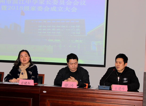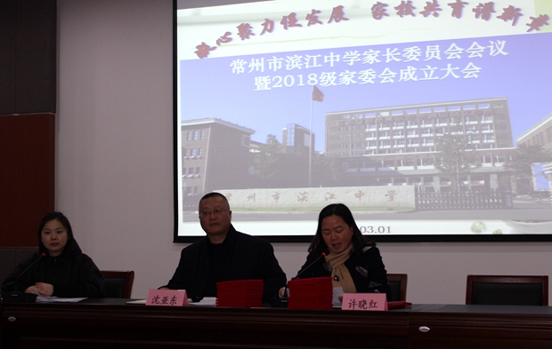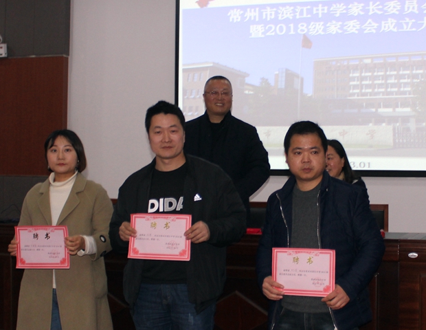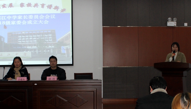 3月1日下午四点半,常州市滨江中学(省常中滨江分校)家长委员会会议暨2018级家委会成立大会在学发处高琳副主任的主持下隆重举行。在对大家的冒雨出席表示感谢后,高副主任宣读了学校家长委员会的产生办法及职责。校长助理许晓红老师宣布了2018级家委会成员名单、副主任和主任人选,又和沈亚东校长分别为新上任的委员、副主任和主任颁发了鲜红的聘书。