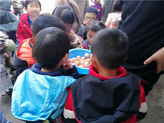 为了让幼儿了解更多孵鸡蛋的知识,2019年3月6日,中(1)班的孩子们在老师的带领下一同来到幼儿园附近养鸡场。有小朋友就争先恐后地跑到鸡棚旁边,他们边看边讨论着:“浠浠说:‘这里有好多鸡啊!’,伊伊说:‘那边的母鸡蹲在角落里是不是在孵小鸡啊?’,俊俊指着一个地方说:‘你们看,那个白菜那里有一个鸡蛋。’……”有些小朋友则还围着养鸡的叔叔不停地问:“叔叔,你这里有鸡蛋吗?怎样的鸡蛋能孵出小鸡?小鸡是怎么孵出来的……”