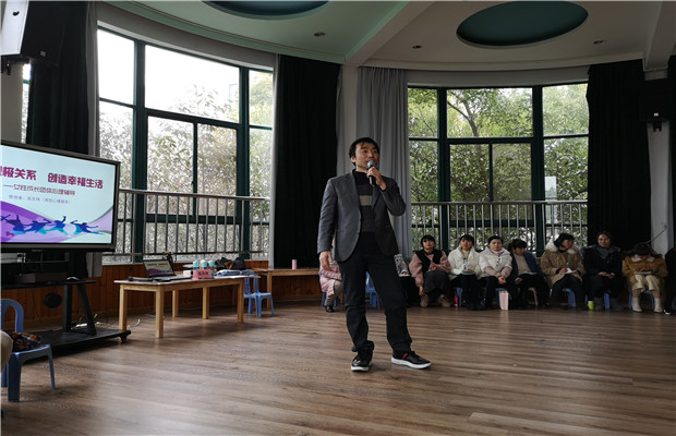 2019年3月1日,藻幼教师们相聚在多功能厅,在阴雨绵绵的午后,迎来了与积极心理学创始人吴志伟校长的第二次见面。活动伊始,吴校长先用“抓乌龟”和“爱的鼓励”这两个小游戏活跃了现场气氛,而后又通过1、2报数分组,让大家两两背靠着背,拉近了彼此之间的距离。