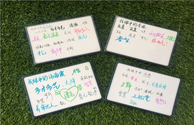 音乐再次响起,老师们的手里也多了一张精致的小卡片。在这张卡片上为自己写下评价后,便开始呈环形式传阅。每传一次都会收获一次来自他人的评价。不管是你评价别人,还是别人评价你,在这个过程中都是一次心与心的再碰撞。当这张卡片又再次传回到自己的手中时,内心收获的那份悸动,便是今日最好的礼物。