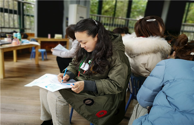 “作为女儿,妻子,母亲,从小到大你都发生了哪些感动的故事?”伴随着一首轻柔的音乐,教师们陷入了深深的回忆之中,逐步翻开了那些陈旧琐碎却又那样感动人心的记忆匣子。跟随着内心的感受,教师们纷纷用画笔按照九宫格的轨迹记录了下来。面对面与同伴四目相对的那一刻,与同伴分享交流的那一刻,有泪水、有欢笑、有感动、有愧疚、有遗憾......正如吴校长总结的那样:如果你的感动还在,那就把握住当下的感受,与家人来一次心与心的交流,将感动延续。