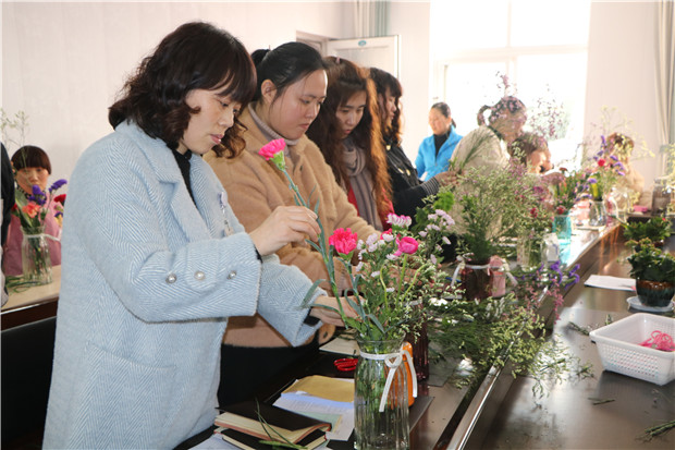 适逢姹紫嫣红、春意浓浓的阳春三月,我们迎来了第109 个“三八国际劳动妇女节”。为了庆祝节日,丰富教职工的精神生活,提高女教工的审美情趣,提高教师的团队意识和工作热情,3月7日下午幼儿离园后,我园开展了“鲜花相伴庆‘三八’”的妇女节活动。