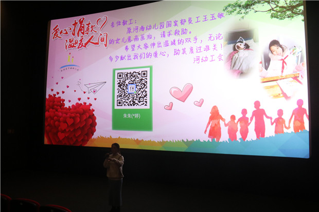 本次活动由河海幼儿园工会和妇联组织,参加对象是全体女教工。下午3:20,幼儿离园后,全体女教工齐集于国宾部向恐龙园徒步行进,并于3:40到达CGV影城。电影开始前,在工会主席万洁的号召下,大家向困难女教工王玉敏进行爱心捐款,一方有难八方支援。随后大家更是被主旋律电影“流浪地球”所征服,表示要珍爱地球,保护人类的家园。