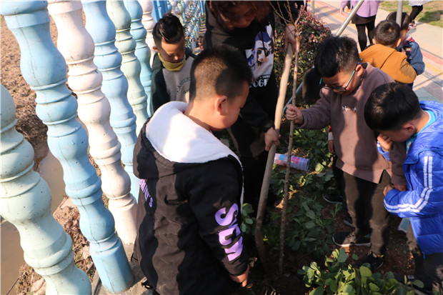 活动中,全体幼儿集中在一起,听植树节的故事,议植树节的意义,领到了自己班级想要种植的树苗。接着,浩浩荡荡的队伍向幼儿园西边围墙走去,这块区域场地适宜,阳光充足,小树苗种植在这里再合适不过了。此刻,家长、老师、幼儿一起动气手来,你挖坑,他松土,你放苗、我们一起浇浇水,一棵棵小树苗种好了。然后,孩子们一起与小树苗合影留念,期待小树们快快长大。