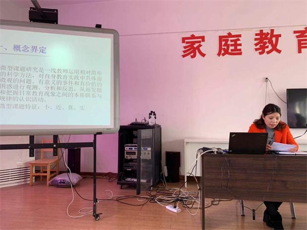 本次培训由教科室主任马云霞老师主讲。她首席解读了微型课题的政策与推进策略,强调微型课题的研究首先要以课堂为中心,以提高质量为目的,开展角度小,周期短,内容实,易推广的微型课题研究。接着马云霞老师结合实例,为一线教师提供了全方位的指导和培训,从课题的选题、课题的论证与设计、课题关键词的界定、课题目标内容的制订到课题成果的展望,都做了详尽的辅导。将深奥的理论与教师实践结合,让老师们感觉到科研就在自己的日常教学中。