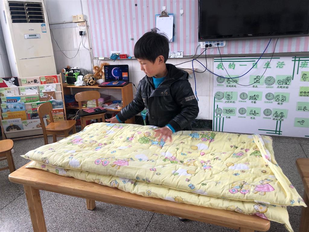 幼儿生活自理能力的培养贯穿在幼儿园一日生活之中,为了提高大班幼儿的自我服务能力,增强自我管理意识,体验生活自理带来的乐趣,孝都幼儿园大(2)班在2019年3月22日开展了一场别开生面的“我能、我行、我会”的幼儿叠被子大赛。