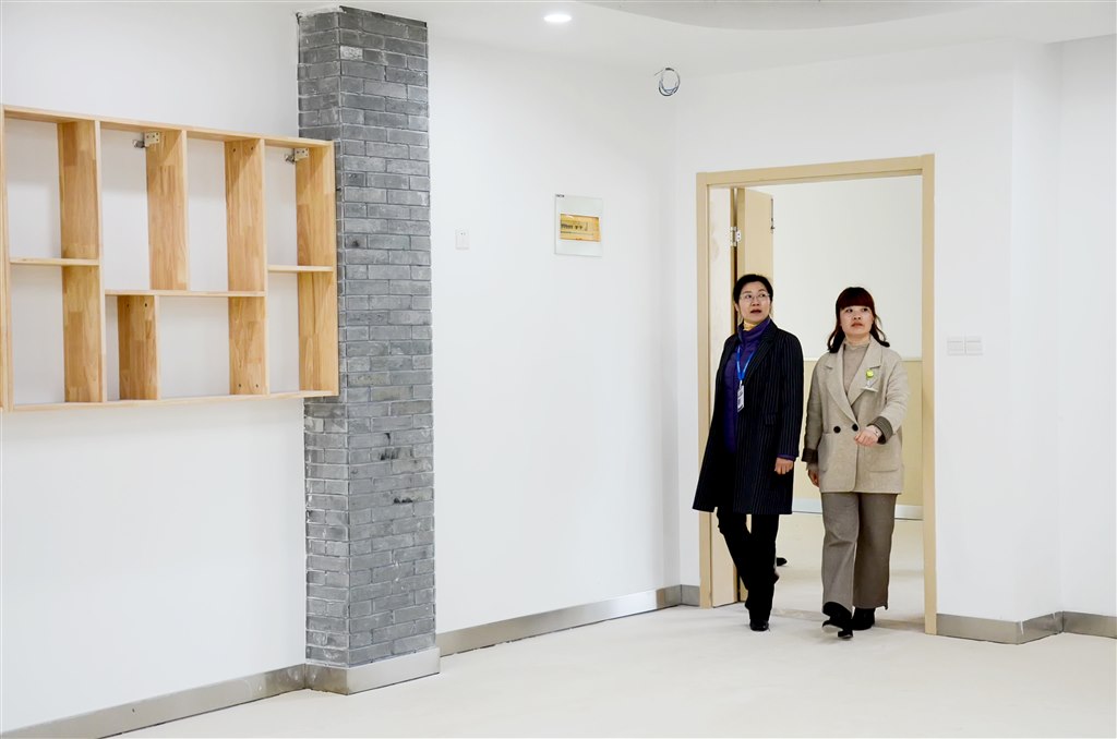 在王玉霞园长的陪同下,完主任重点巡查了教室、厨房、户外场地等建筑单体。重点查看了室内专用室及多功能室的走向与布局,在赞同各室现代化,高标准的同时,就将来的室内装修设计和室外广场布局提出自己的想法。
