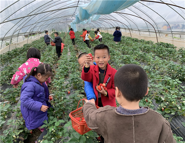 在老师的带领下,孩子们排着整齐的队伍向草莓种植园出发,一路上孩子们都被路边美丽的景色深深吸引,粉红色的桃花、黄艳艳的油菜花、翠绿柔软的柳条……春天的气息扑面而来,大家欢歌笑语,开心地来到了目的地。孩子们这边看看,那边瞧瞧。只见大棚里满眼的草莓,有大红的也有粉红的,一个个草莓羞答答地躲在绿叶后面,散发着诱人的香气,真叫人垂涎欲滴。窄小的通道对于孩子们来说,有些举步维艰。然而,通道的泥泞根本抵挡不住大家摘草莓的热情,孩子们看着自己的劳动成果,心里乐开了花,纷纷向老师展示自己的劳动成果。随后,孩子们回到教室里,品尝了亲手摘的草莓,大家的脸上都洋溢着甜甜的笑容。不仅如此,放学时,孩子们将剩余的草莓带回家,准备和家人一起分享劳动成果。