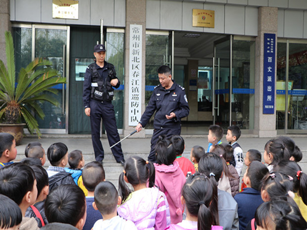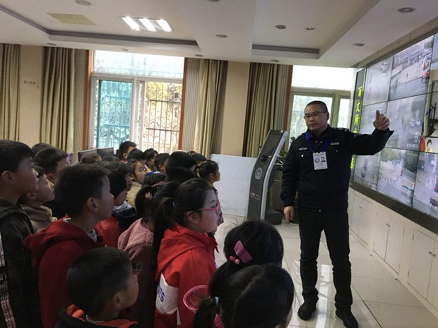 首先,派出所的张教导员带领孩子们参观了勤务指挥室,引导幼儿观察了辖区视频监控和内勤警官工作室。接着,张教导员带孩子们来到了器材室,展示了警务人员在工作中会用到的防弹衣、强光手电筒、警棍、辣椒水、手铐等器材。最后,派出所还特意为孩子们准备了一辆警车,讲解了警车的作用,并鼓励孩子们好好学习,长大了做对社会有用的人!