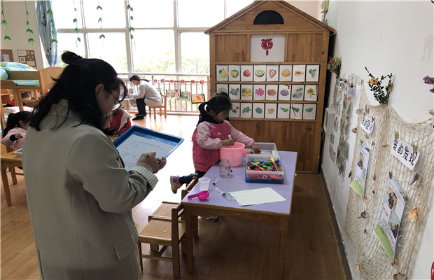 环境是重要的教育资源,应通过环境的创设与利用,有效的促进幼儿的发展。可见,我们教师不仅应对儿童环境予以足够的关注与重视,而且应该积极创设、发展支持性的环境,以有效的促进儿童的发展。为了提升老师创设班级区域支持性环境的能力,提高老师的专业素养。2019年3月29日下午中班级组老师齐聚中六班开展了区域游戏观摩研讨沙龙。