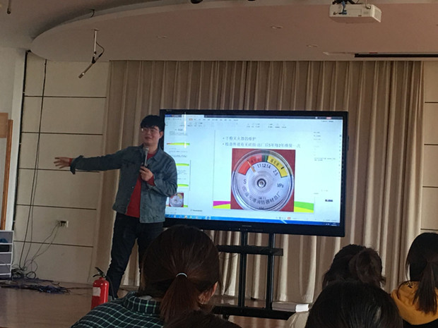素有“井幼消防专家”之称的巢林挺老师,也在会上向全体教师们普及了灭火器的知识。根据火灾的固体、液体、气体等六种类别的不同,合理选择和使用合适的灭火器;对于幼儿园里现有的ABC类灭火器,巢老师还现场讲授了使用灭火器的要点与注意事项。