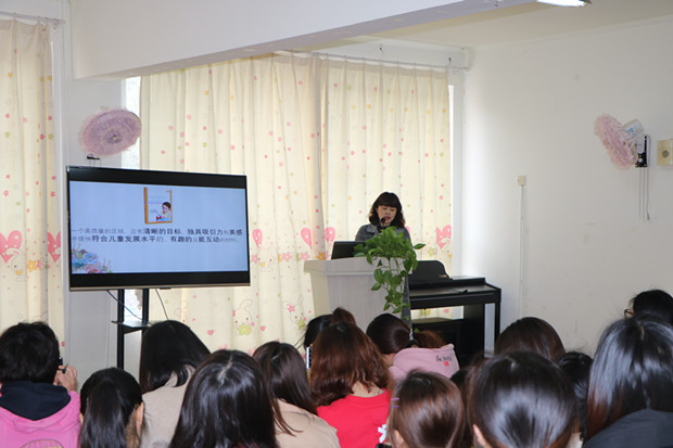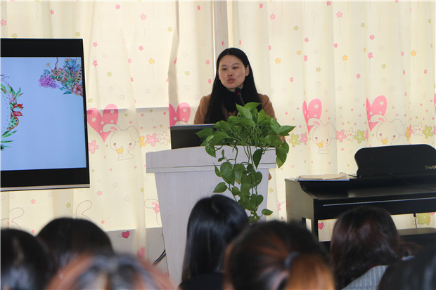 由印惠琴园长在主题“追‘因’寻‘境’,察‘言’变‘设’”汇报我们以益智区为例谈基于观察的区域环境创设,从三个方面“关于益智区”、“关于观察”、“关于创设”阐述了我们益智区对孩子的发展及我们是如何基于观察从空间规划、材料及支持性环境中创设益智区。