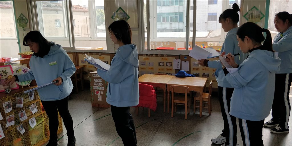 本次评比使用了《幼儿园班级环境评估表》评估表通过“安全卫士、温馨舒适、归属感、支持幼儿学习”四个方面、26个类目、37项指标,观察和评估幼儿园班级环境。活动由每位教师为评委,各位教师依次观摩每个班的班级环境创设进行评比打分。