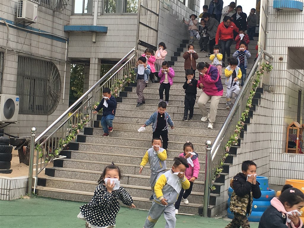 2019年4月4日下午,随着一阵急促的警报声响起,常州市新北区孝都幼儿园消防演练活动正式开始。警报声响起后,全体幼儿在老师的带领下,迅速进入紧急疏散状态,按照逃生演练方案设定的逃生路线,迅速而有序地从各楼层、各活动室撤离到指定位置。幼儿到达目的地后,教师快速整队、核查人数,并向总指挥报告本班人数和情况。此次演练整个过程用时不到两分钟,全园师幼就安全撤离到了指定的操场位置,演练过程井然有序。负责安全的总务主任胡清丽老师借此机会给孩子讲解了为什么我们要开展消防演练,并且给幼儿把灭火器带到了现场,通过摸摸、看看、讲讲的方式让孩子了解这个消防设备的作用。