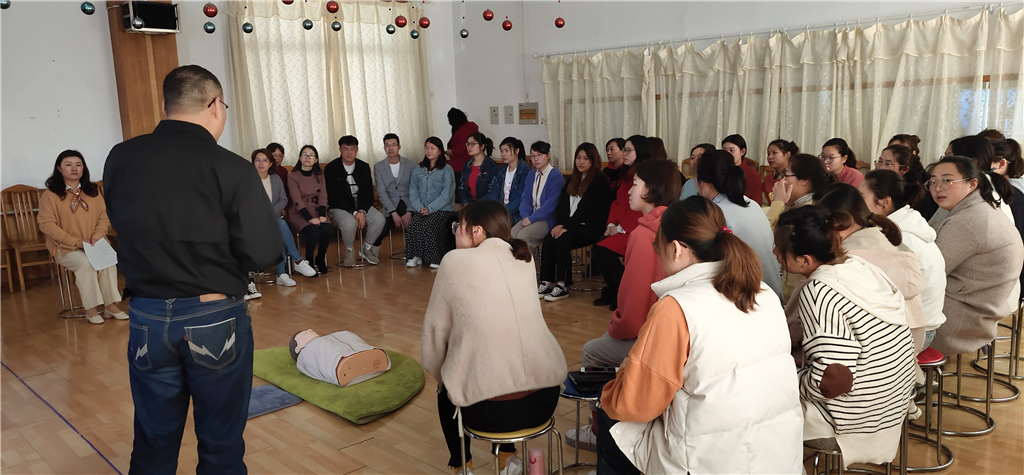 为进一步普及应急救护常识,大力宣扬“人道、博爱、奉献”的红十字精神,增强安全意识,,于4月3日在我园开展了一次关于急救的培训活动,50余名教师参加了此次培训。