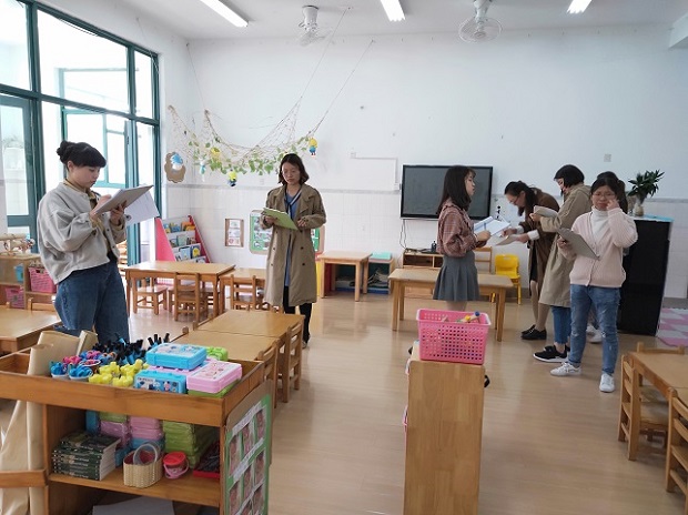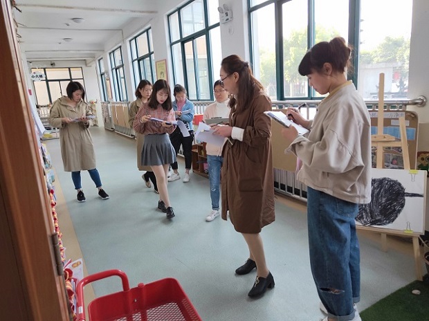 本次评比内容包括班级主题墙布置、区域环境创设及公共区环境创设等。由各班老师介绍各班环创主题设计理念、色彩搭配原则、区域活动的设置和整体环境的搭配。此次观摩评比活动由施冬玉园长、唐红玉园长、陈莉园长和环创组所有成员担任评委,评委组的老师对各班主题墙、种植角、区角环创等进行评比打分。