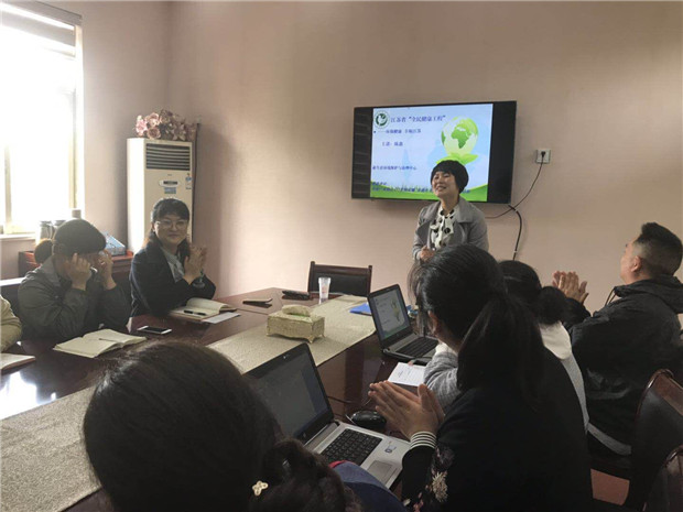 2019年4月12日中午,百丈中心幼儿园全体教师集中在会议室,认真聆听了一场生动有趣的主题为“环保健康,幸福江苏”的环保讲座。