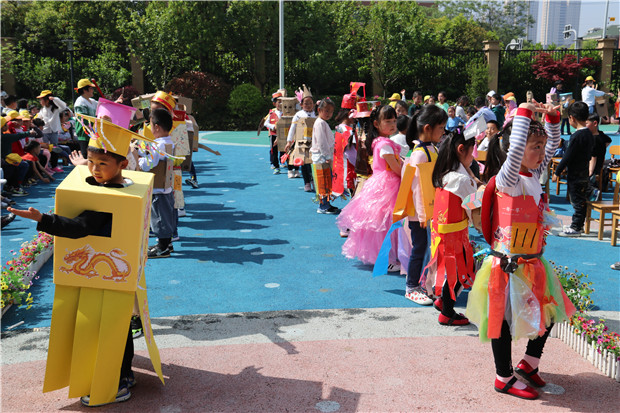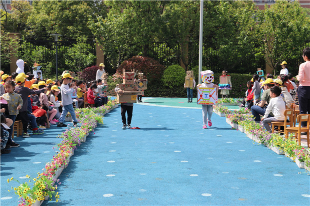 4月18日上午,河海幼儿园国宾部的操场上,随着10、9、8、7……1全场倒计时的结束,一场别开生面的纸箱服装秀拉开帷幕。本次活动由河海幼儿园国宾部组织,小中大共500个家庭参与了本次活动。活动由范燕娇、季叶洁、管亚静主持。