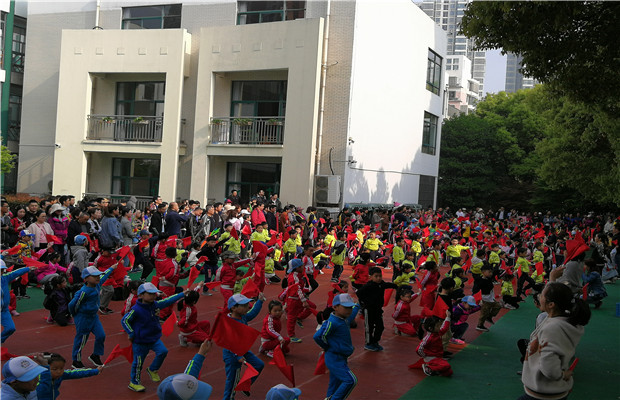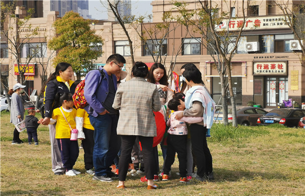 4月12日上午8:10,藻幼全体大班组幼儿和家长们准时集合于操场上。在激昂的音乐声中,孩子们精神抖擞地向家长们展示了本学期的新律动《斗牛舞》。一曲结束,孩子们在老师的带领下,在家长的陪伴中,推开了园所的大门,向本次活动的终点龙湖户外草坪迈进。经过近四十分钟的徒步,藻幼大班七个班级的人员全部安全到达终点。