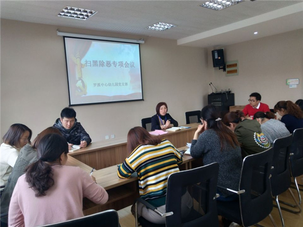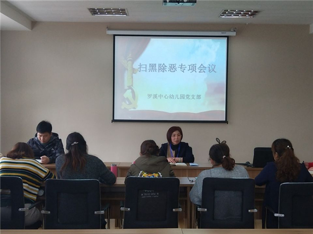 为贯彻落实中共中央《关于开展扫黑除恶专项斗争的通知》,根据国家、省、市、区扫黑除恶专项斗争的有关部署,结合本园的实际情况,本周一中午,罗溪中心幼儿园谢菊仙园长带领党员及园部行政召开了“扫黑除恶专项斗争”工作会议。