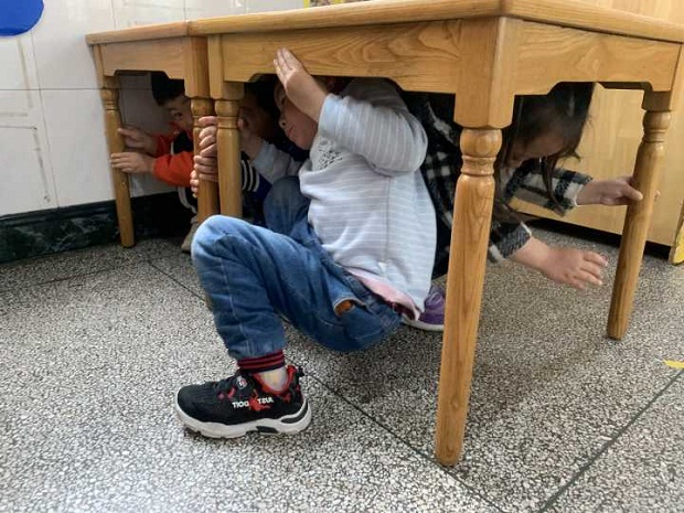 在开展演练前期,主管安全的总务主任胡清丽老师,带领全体教职工就“地震应急避险和疏散逃生知识”进行了学习,在学习中教职工对为什么会产生地震?地震有那些危害?地震来了该怎么办等等都有了深刻的了解,基于学习的基础上对疏散演练的方案进行了研讨和更加周密的部署。4月23日下午15点准时开展了此次演练活动,在疏散演练的过程中,楼梯口引导员,各位班老师以最快的速度到达所在的岗位,组织幼儿利用学到的蹲、躲、握、逃的技能以沉着冷静、互相合作、科学有效的方式全部疏散到安全地带。负责安全的胡清丽老师亲切地问孩子们:“为什么我们要开展地震逃生疏散演练啊?”小朋友说:“因为我们学会了地震逃生的本领后,万一有一天地震了,我们就能保护自己不受伤。”全体小伙伴都竖起了大拇指。