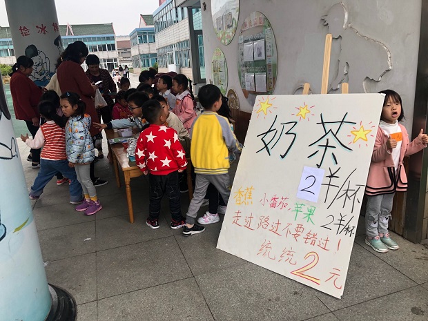 童心飞扬,健康成长;欢声笑语,快乐摆摊。今天下午四点,在安家中心幼儿园幼儿园内,中班的老师们和孩子们共同组织了一场精彩特别的活动。近一百五十名的中班小朋友们自己当家作主,在学校大厅内摆起摊位,当起了小主人。他们在老师的陪伴下,排好桌子,摆上货,正式吆喝开卖,“走过路过不要错过啦”、“卖奶茶啦,谁来买啊”、“又香又甜的奶茶呀!”。幼儿园里充满着孩子们的叫卖声,还有家长们的砍价声,场面热闹非凡。