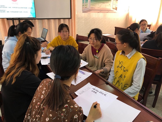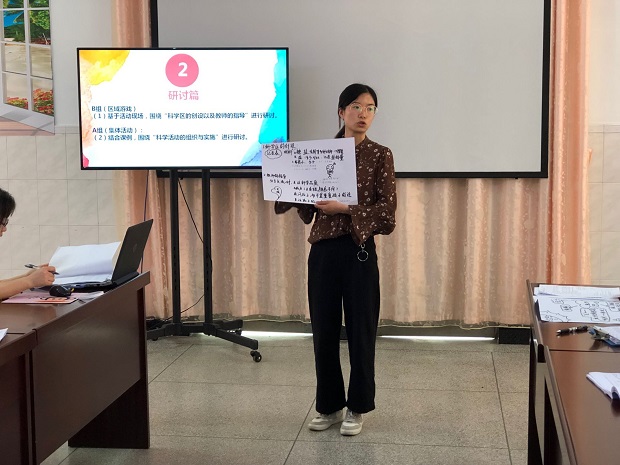 中午全体教师在会议室集中,在执教老师深刻反思后,观摩老师围绕两个话题,展开了激烈的讨论:话题1:基于游戏现场,说说科学区创设和教师的指导策略。话题2:科学活动中教师的组织与实施。在研讨的现场教师面对面进行对话,为执教老师答疑解惑、提出可行性重建建议。