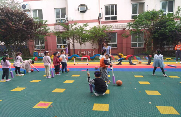 周婷玉老师,执教了一节中班棍球《炮兵训练营》,活动聚焦射球技能,通过远近距离的调整,实现握棍、侧身、俯身的基本姿势以及力量有距离的关系。在活动体验环节,教师为孩子提供了不同类的球门、不同的发射点,满足幼儿的需求。支架提供建立在幼儿当下发展水平的基础上,以幼儿为中心,实现体验、思考、分享、优化的学习路径。