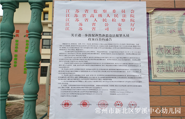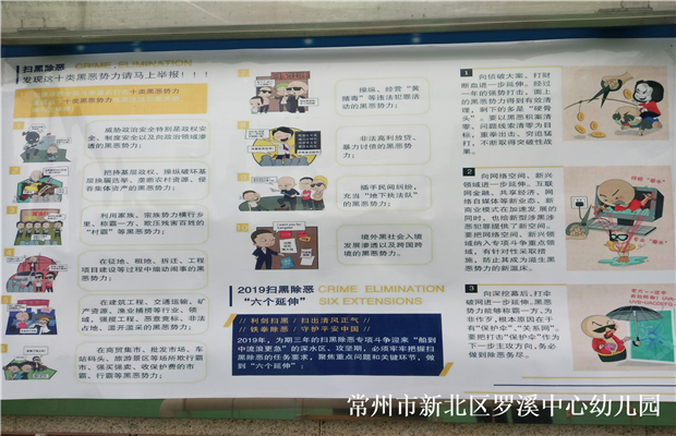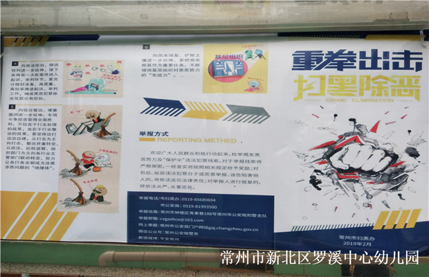 为全面贯彻落实上级扫黑除恶会议精神,维护社会稳定,我园结合本园的实际情况,我园成立了以园长为组长的扫黑除恶工作小组,制定了《幼儿园扫黑除恶专项工作实施方案》,并开展了一系列“扫黑除恶”的宣传活动。