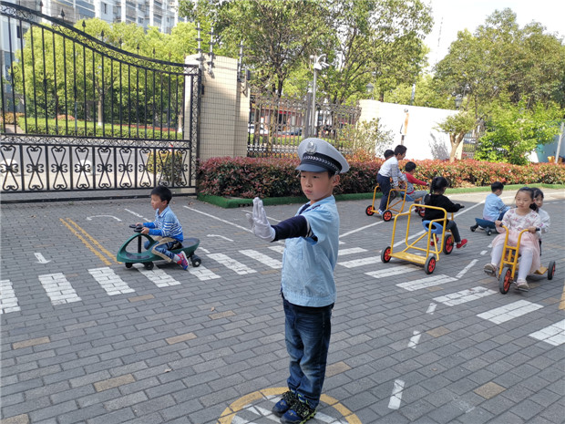 看,孩子们来到交通体验场,他们快速穿好交警、协警服和志愿者服饰,并立刻上岗工作。一个个神气的小司机们也驾驶着车辆缓缓驶向马路。在这里,一场交通大体验马上就要开始啦!马路上,只见交警、协警们认真地在巡逻,发现有违反交通的车辆马上进行处理。志愿者们也履行着他们的职责,不时提醒过马路的行人不要闯红灯,保护自己的安全。再看小司机们,他们驾驶着车辆,载客的载客,运货的运货,送快递的送快递……整个交通枢纽有条不紊,交通安全和交通规则,每一位小司机都铭记在心!