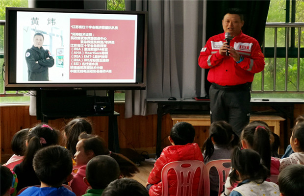 为进一步增强全园师幼应对突发事件的安全防范技能,切实掌握应对防火防暴等突发事件的有效应对和逃生策略,2019年4月29日上午,常州市藻江花园幼儿园特别邀请了常州市红十字会龙城救援队的黄炜队长,在多功能厅给中大班的孩子们与老师们带来了一场精彩的安全知识讲座。