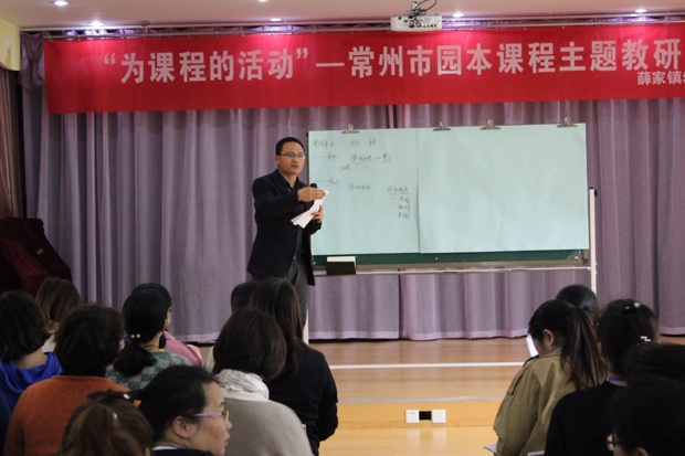 伴随着春日里的鸟语花香,2019年4月30日,“为课程的活动”——常州市园本课程主题教研活动在常州市新北区薛家镇幼教集团如期开展。常州市校本课程教研员李令永博士、新北区校本课程教研员张石磊、新北区幼教教研员徐志国、常州市幼儿师范学校方红老师、常州市园本课程中心组蒋惠娟园长、沈国梅园长及天宁区、新北区各幼儿园的业务园长、骨干教师近百人参与了此次活动。