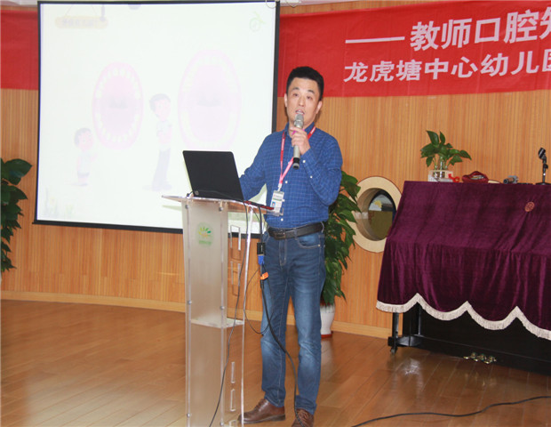 活动伊始,新北区疾控中心张友科长运用生动形象的PPT,向全体教职工进行了一次专业的牙齿知识讲座,仔细讲解了牙齿的构造,展示了一张张健康牙齿和损坏牙齿的图片,向大家重点讲解了科学刷牙的正确方法,并在互动交流中进行了现场演示。同时,张科长还告诫我们要坚持健康饮食,少食甜食,定期检查牙齿等护牙小常识,帮助老师树立良好的爱牙意识。