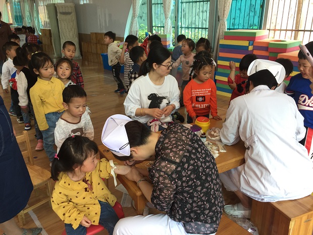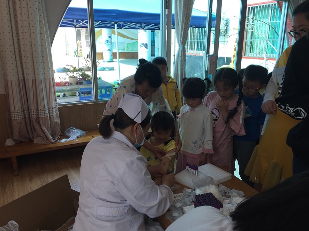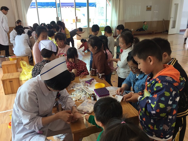 5月10日,安家幼儿园全园幼儿接受了安家医院来园进行的血红蛋白检测。各班幼儿在保健老师杨菁的安排下,按照小班、中班和大班的顺序有序进入验血专用活动室,孩子们大胆地撸起袖子,接收医生护士的抽血,虽然小班有个别幼儿因害怕而哭泣,但是教师能及时安抚,再加上医生、护士的轻声安慰,胆小的孩子很快就坚强起来,因此抽血检查活动进行得非常顺利,孩子们很配合,医生护士很细心,一天时间完成了全园幼儿的抽血流程。