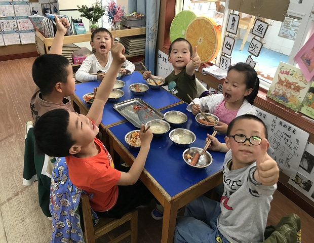 第二天早上,太阳如约的升起,孩子们也早早的起床,刷牙洗脸。幼儿园为孩子们准备了营养丰富的早餐,孩子们享受着美食,也享受着和朋友们一起吃早餐的乐趣。
